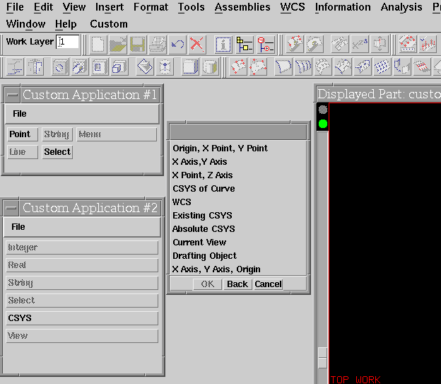 In Figure 1-4 the Point, Select, and CSYS buttons use the Cancel Custom