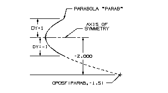 When using a parabola or a hyperbola the amount of extension is based on the linear distance between the minimum and maximum "Y" value of the curve with respect to the CSYS of the conic. The maximum and minimum "Y" values limit the sweep of the curve on the positive and negative side of the axis of symmetry. Therefore, a positive scalar value assumes an extension on the maximum "Y" side of the axis of symmetry and a negative scalar value assumes an extension in the minimum "Y" side of the axis of symmetry.