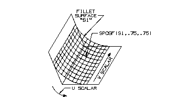 For the fillet surface, the U scalar pertains to the circular grid lines and its direction is from surface 1 to surface 2. The V scalar pertains to the two splines forming the edge curves of the fillet surface.