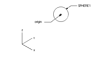 $$$$ Declarations$$ ENTITY/SPHERE1$$$$ Geometry Definition$$ SPHERE1=SOLSPH/ORIGIN,1,3,2,DIAMTR,.75
