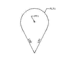 FLT1=FILLET/LN1,IN,CR1,LN2,CENTER,PT1,NOTRIM