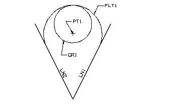 FLT1=FILLET/LN1,IN,CR1,LN2,CENTER,PT1