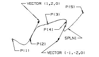 SPLN1=SPLINE/P(1),P(2),VECT,1,2,0,P(3),P(4),$