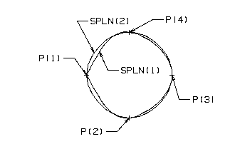 Spline allows you to create a spline through a series of previously defined points. The resulting spline is generated by cubic (third order) polynomials. The optional minor word CLOSED causes the first point to be automatically assumed as the last point and the spline to be closed. In a closed spline, the starting slope is forced to be equal to the slope at the ending point. If the CLOSED minor word is omitted, the spline is open even if the first and last points are coincident and the starting and ending slopes are not forced to be the same.