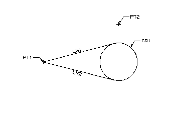 LN1 is defined using PT2 to specify to which side of the circle it should be tangent.