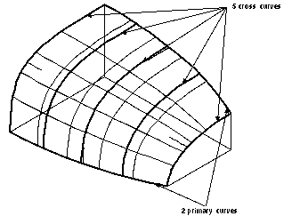 Create a curve mesh B-surface by interactively selecting the primary and cross curves as well as the curve emphasis.