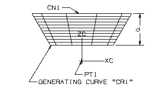 The figure above shows the definition of the same cone, except that this statement shows the use of a point (PT1) to define the vertex direction.