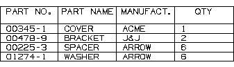 In this example, the existing parts list contains four fields (PART NO., PART NAME, MANUF., and QTY) as shown below.