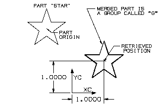 Demonstrates the use of the RPATTG statement to import a previously created part into the current part as a group. The part is imported through a matrix to place its origin at 1,1.