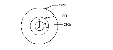 This example demonstrates the creation of two circles by transforming CR1 using a scaling matrix.