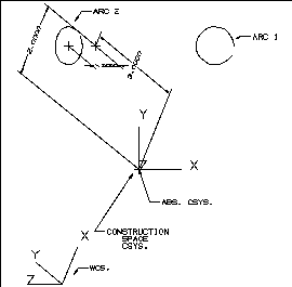 Arc 1 was created with the WCS equal to the ABS CSYS.